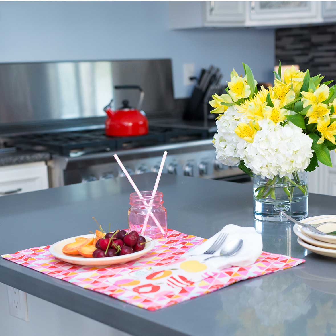 Add a dash of colorful flavor to your kitchen table or your child’s play table with our all-in-one place mats. Contrasting pocket conveniently holds napkins, cutlery, crayons, and more.